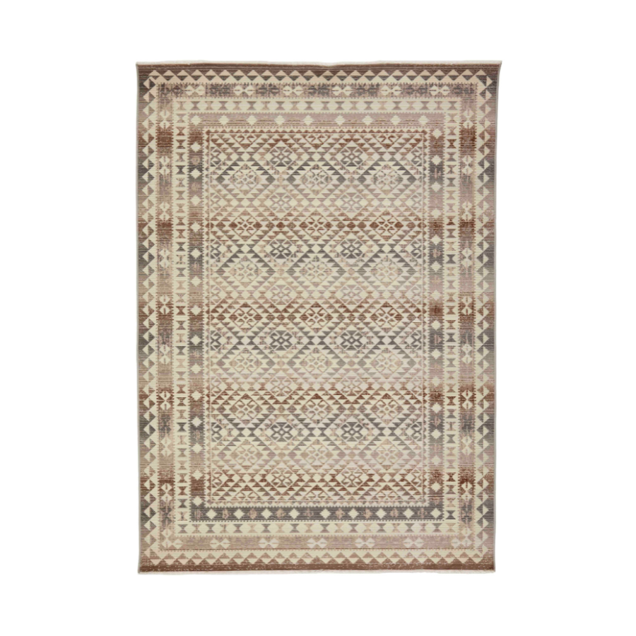 Mohaw Beige tæppe bringer et strejf af tradition og håndværk ind i dit hjem. Inspireret af de klassiske Kelim-tæpper byder de på smukke geometriske mønstre og afdæmpede beige farver – alt sammen med det unikke og charmerende udtryk, som Kelim er elsket for.