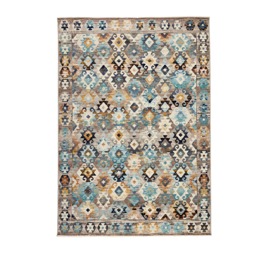 Mohaw Brown / Blue tæppe bringer tradition og håndværk ind i dit hjem. Inspireret af de klassiske Kelim-tæpper, byder de på smukke geometriske mønstre og afdæmpede smukke farver – alt sammen med det unikke og charmerende udtryk, som Kelim er elsket for.